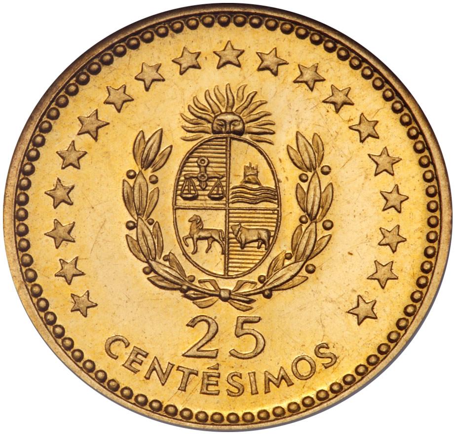 Lot 1269 of 860: Uruguay-Republic. Pattern 25 Centesimos struck in Gold, 1960