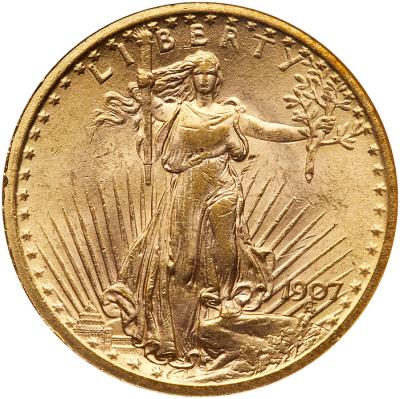 Lot 1658 of 2769: 1907 $20 St. Gaudens. Flat Relief NGC MS62