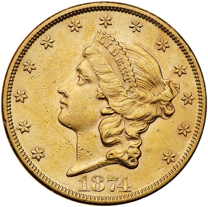 Lot 1572 of 2769: 1874 $20 Liberty PCGS AU58