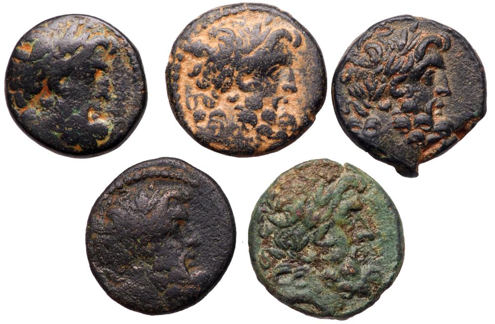 Lot 2236 of 2769: 5-Piece lot of Antiochene bronze coins depicting the Star of Bethlehem.