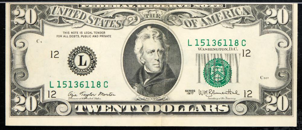 Lot 326 of 2769: $10, $10, $20, $20, $20, $100 all with Gutter Fold Errors