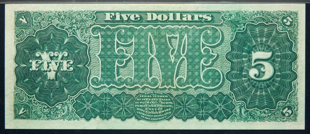 Lot 47 of 2038: 1890 $5 Treasury Note. Fr. 361. PMG Ch Unc 64 EPQ.