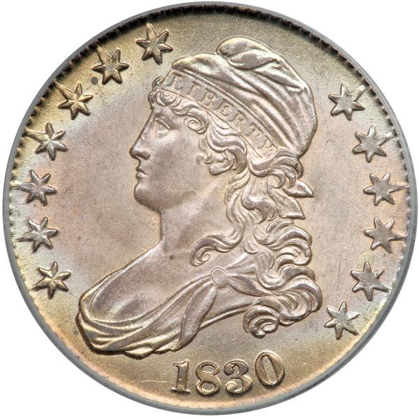 Lot 808 of 3403: 1830 Capped Bust Half Dollar. Large 0. ICG MS64