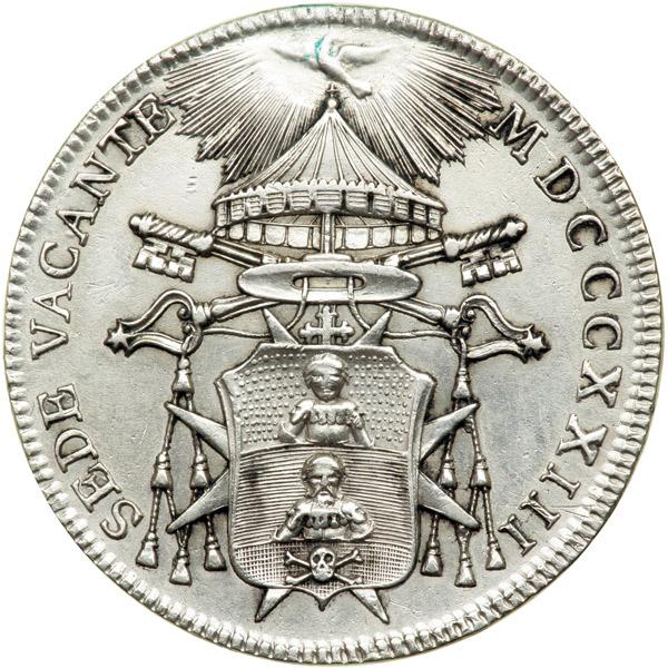 Italian States - Papal/Roman States. ½ Scudo, 1823-IIB. KM-1291; Berman-3249; Munt-5. Sede Vacante. Cardinal arms.