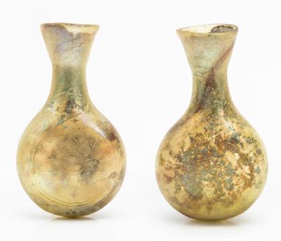 Lot 975 of 1487: Incredible Lathe-Cut 2 Sided Glass Flask. Byzantine Period, ca. 9th Century