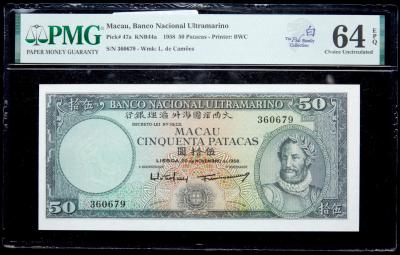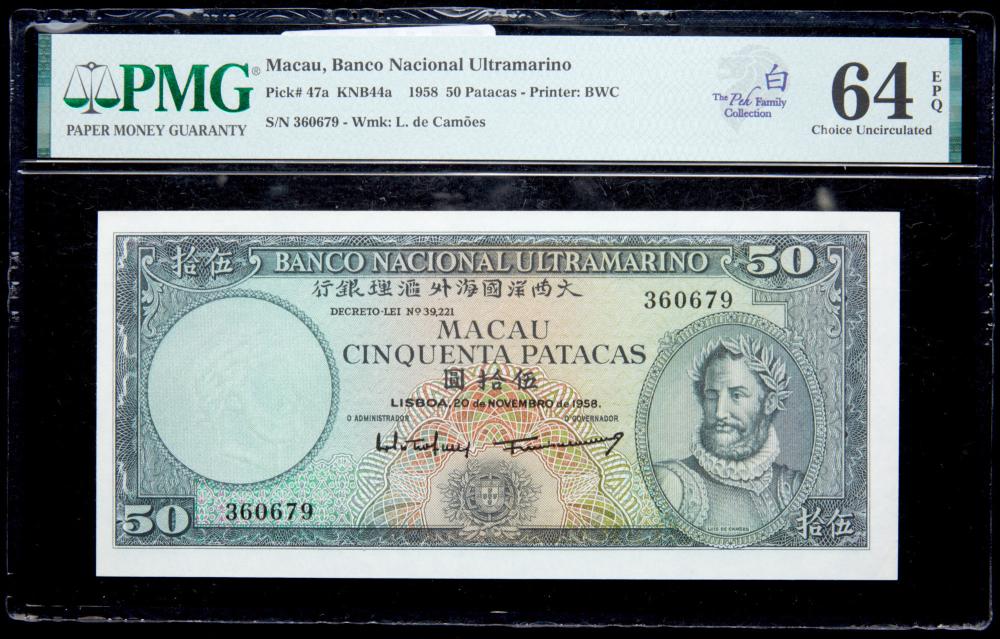 Lot 1463 of 1971: Macau, Banco Nacional Ultramarino. 50 Patacas, 1958