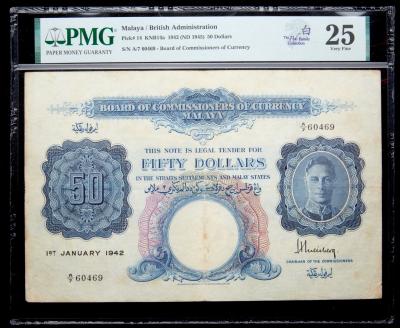 Lot 1477 of 1971: Malaya / British Administration. 50 Dollars, 1942 (ND 1945)