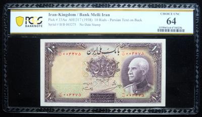 Lot 984 of 1151: Iran-Kingdom / Bank Melli Iran. 10 Rials, AH1317 (1938)