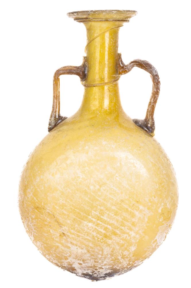 Lot 1299 of 404: Roman Twin Handle Pilgrim Flask in Choice Condition Boasting Beautiful Honey Yellow and Brown Tones