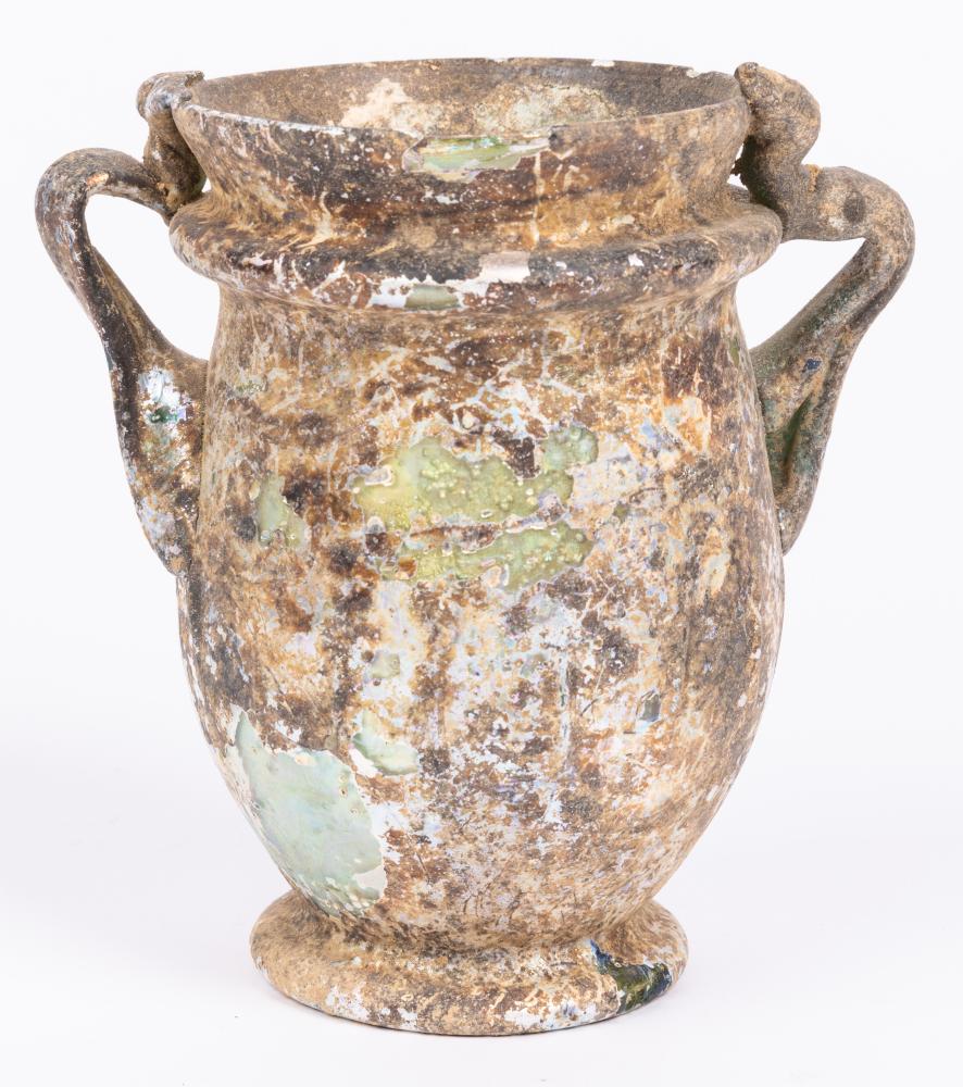 Lot 1308 of 404: Twin Handle Polychrome Encrusted, Free-Standing Jar