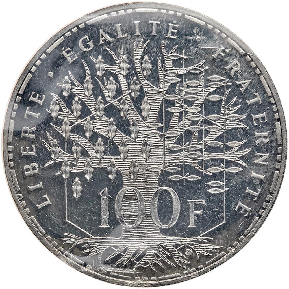 Lot 905 of 1906: France. 1985 100 F Panthéon Pure Platinum 2 ozt. Piëfort. Gem Proof Gem Proof