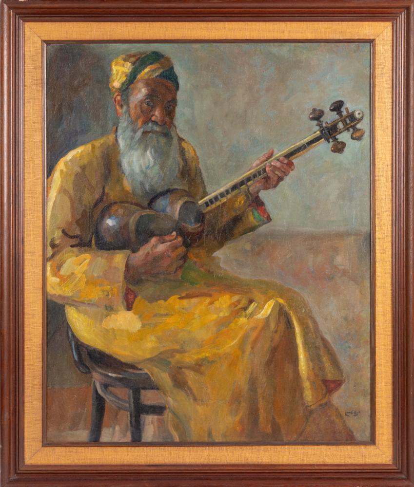 Lot 15 of 968: Shlomo Bernstein: "Gentleman Playing a Tar" Original Oil on Canvas Mounted on Wood Panel