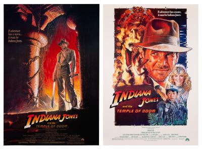 Lot 446 of 968: INDIANA JONES AND THE TEMPLE OF DOOM: Original Advance One Sheet and Original Engagement Onesheet. Mint Rolled