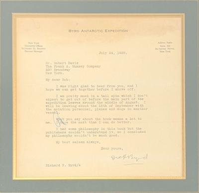 Lot 601 of 968: Richard E. Byrd: TLS on Byrd Antarctic Expedition Letterhead dated 1928, One of the 20th Century's Greatest Explorer