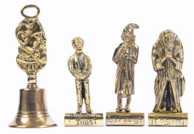 Lot 590 of 968: Set of Three Brass Dickensian Figurines and a Bell
