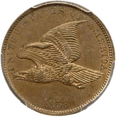 Lot 15 of 767: 1858 Flying Eagle 1C. Sm Letters PCGS AU58
