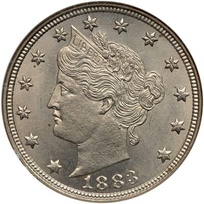 Lot 18 of 767: 1883 Liberty 5C. Without CENTS NGC MS65