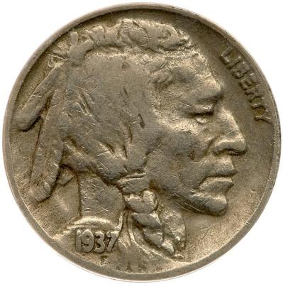 Lot 26 of 767: 1937-D Buffalo 5C. 3 Legs ANACS F12 Details