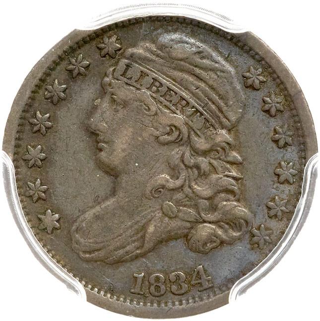 Lot 33 of 767: 1834 Bust 10C. Lg 4 PCGS EF40