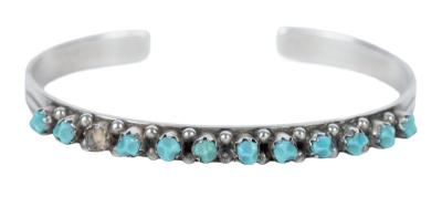 Lot 1011 of 459: L.J. Lonasee Zuni Sterling Silver and Turquoise Petit Point Cuff Bracelet