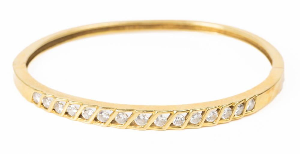 Lot 1001 of 459: Ladies Beautiful 18K Yellow Gold Bracelet with 15 Diagonal Channels Each Set with Fine Diamonds