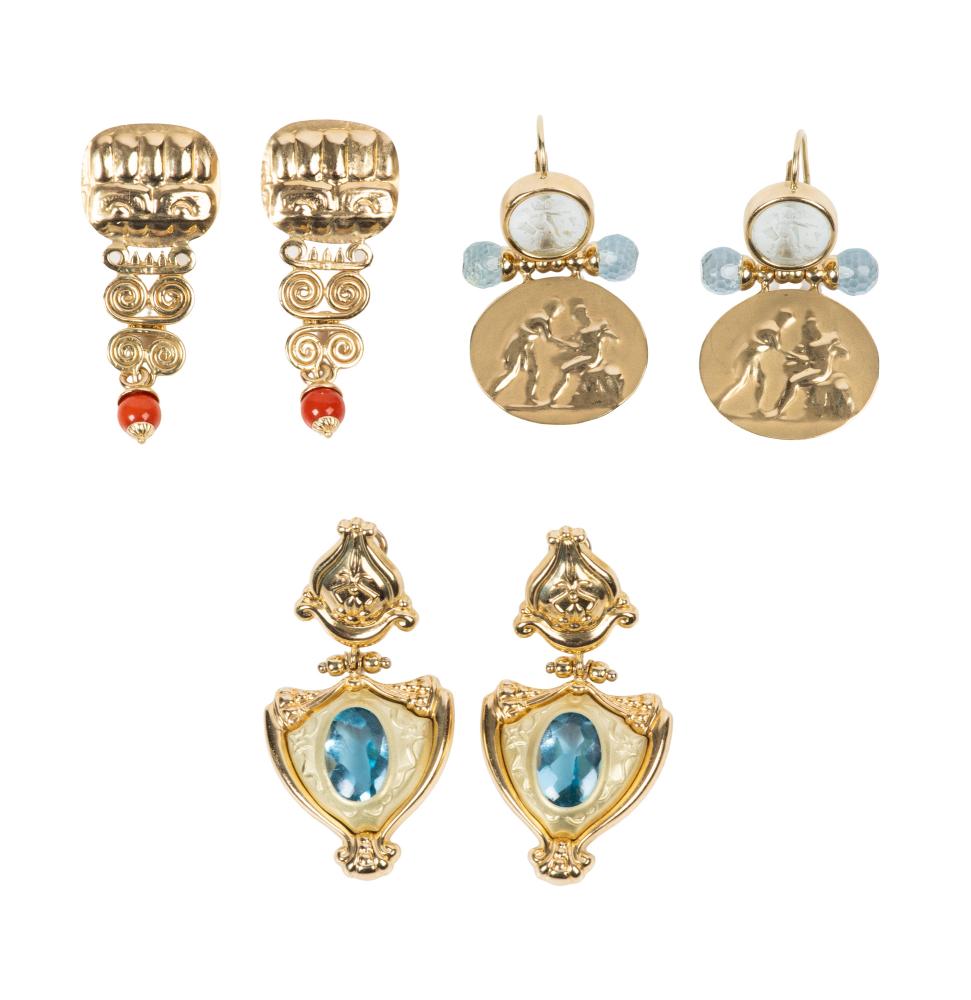 Lot 1029 of 459: Three Pair of Dramatic, 14K Yellow Gold Dangle Earrings Spanning Centuries in Styles