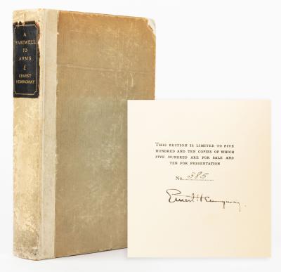 Lot 1525 of 810: Ernest Hemingway: "A Farewell To Arms" (1929) Signed Limited Edition to 510 Copies This Volume #385 in Modest Condition.