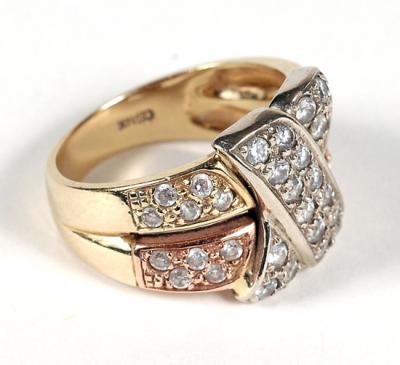 catalog Auction info Buyers Premium of 20.00% added to each and every lot The November Collectibles Sale(#66) 12/03/2011 10:00 AM PST CLOSED! Lot 779 of 856: Lady's Diamond, 14K Rose & Yellow Gold Ring Click image to enlarge PreviousNextSimilar Items Lot closed - Winning bid:$300 (1 bid) Estimate: $500 - $800 Remove from watchlist Add to watchlist Tell a friendAsk a question The November Collectibles Sale(#66) 12/03/2011 10:00 AM PST CLOSED! Description Description: Lady's Diamond, 14K Rose & Yellow Gold Ring, Featuring 38 full-cut diamonds, weighing a total of approximately 1.50 carats, gross weight 8.10 grams. Estimated Value $500 - 800 Categories: Jewelry