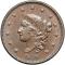 1836 N-2 R2 AU58. A lustrous mint state cent that has a few too many tiny ticks on the portrait for a mint state grade. A thin vertical nick close before the center of the nose is a good identifying mark. Lustrous medium brown with traces of mint red showing on both sides. The fields are satiny and the cent offers solid mint state eye appeal. M-LDS.