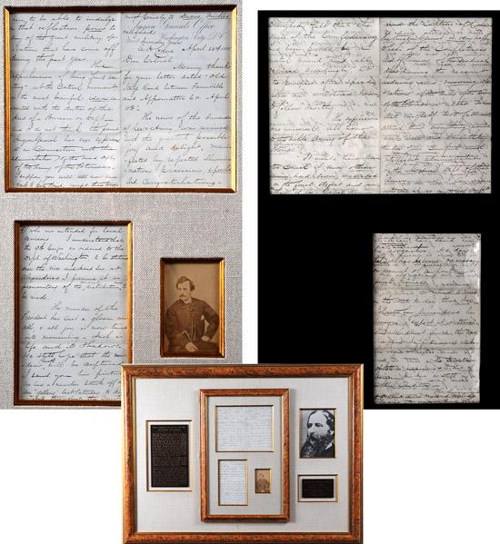 [Lincoln, Abraham] Dr. Charles Henry Crane. Dr. Crane (1825-83) was one of the doctors who attended President Lincoln after he was shot by John Wilkes Booth. He was one of nine men present at Lincoln's autopsy, being acting Assistant Surgeon General. In 1866 he became Assistant Surgeon General and from 1882-83 served as Surgeon General. Autograph Letter Signed ("C.H. Crane"), 6 pages (3 sheets recto/verso), on letterhead engraved "Surgeon General's Office / Washington City, D.C.," 7 x 4¼ in., April 22, 1865. Crane writes to Col. Thomas A. McParlin, Surgeon General of the Army of the Potomac, about the incredible events which have taken place in April: the surrender of Confederate general Robert E. Lee, the assassination of President Abraham Lincoln and the nationwide effort to find John Wilkes Booth, and the probable flight of Confederate president Jefferson Davis. Superb content. Very fine condition. The letter has been framed so that all sides show and matted with a CDV of John Wilkes Booth, which Crane sent to McParlin; this frame is hinged to a larger frame, 29 x 38½ in., which contains a plaque regarding the background of the letter, another with the content of the letter, and a smaller biographical plaque of Crane, as well as an image of Crane. A handsome, impressive display piece.