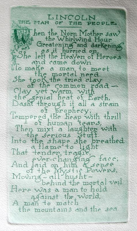 (Lincoln, Abraham) Edwin Markham's Poem: "Lincoln, the Man of the People". In 1922, Markham's poem "Lincoln, the Man of the People" was selected from 250 entries to be read at the dedication of the Lincoln Memorial. Markham, himself, read the poem. "Lincoln, the Man of the People" by Edwin Markham (1852-1940). NY: Bernhardt Wal1, 1922. One of 26. Illus by Bernhardt Wall, with five etchings. 12½ x 10 in. Wraps are chipped and soiled.