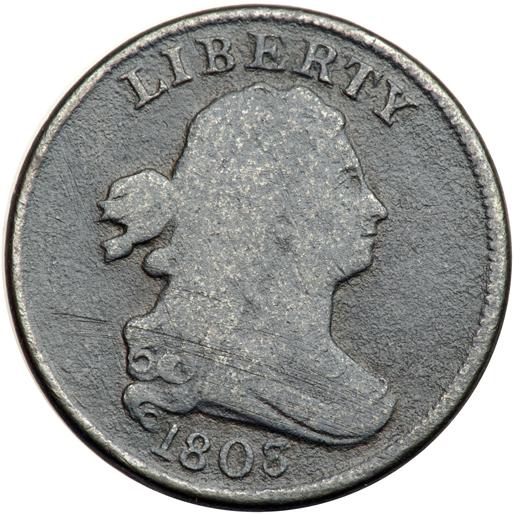 catalog Auction info Buyers Premium of 20.00% added to each and every lot September Pre-Long Beach Auction(#70) 09/02/2012 9:00 AM PDT CLOSED! Lot 107 of 3963: 1803 C-2 R4 G4 Click image to enlarge PreviousNextSimilar Items Lot closed - Winning bid:$100 (1 bid) Estimate: $100 Remove from watchlist Add to watchlist Tell a friendAsk a question September Pre-Long Beach Auction(#70) 09/02/2012 9:00 AM PDT CLOSED! Description Description: 1803 C-2 R4 G4. Several points sharper but dull from uniform fine roughness. Dark steel and olive. No verdigris, but there is a scuff of hairline scratches across the bust and shoulder. Clear date and legends. EDS. Estimated Value $100-UP. Ex Ray Senchuck 4/6/1990. Categories: The Carvin Goodridge Collection of Half Cents