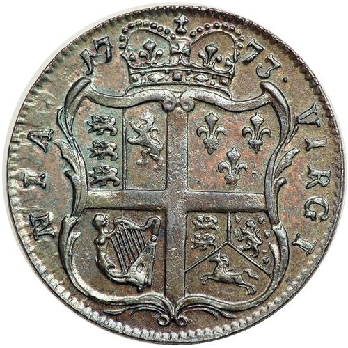 catalog Auction info Buyers Premium of 20.00% added to each and every lot June Long Beach Coin Auction(#74) 06/02/2013 11:00 AM PDT CLOSED! Lot 29 of 4868: 1773 Virginia Halfpenny Breen-180 MS60 Click image to enlarge PreviousNextSimilar Items Lot closed - Winning bid:$525 (1 bid) Estimate: $500 Remove from watchlist Add to watchlist Tell a friendAsk a question June Long Beach Coin Auction(#74) 06/02/2013 11:00 AM PDT CLOSED! Description Description: 1773 Virginia Halfpenny Breen-180 MS60. Variety with a stop following GEORGIVS. Glossy chocolate and olive brown. Sharply struck. Smooth and very nice for the grade, essentially flawless. Variety with 7 strings in the harp. Listed on page 45 in the "Redbook." Weight 113.8 grains. Estimated Value $500-UP. Categories: U.S. Colonial and Copper Coins, Colonials