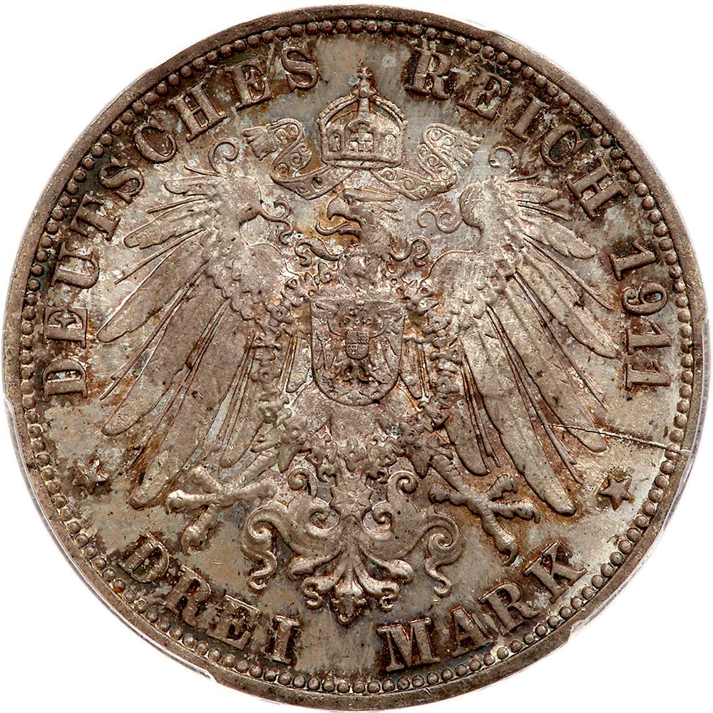 Lot 2501 of 2345: German States: Wurttemberg. 3 Mark, 1911-F PCGS MS67
