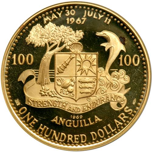 catalog Auction info Buyers Premium of 20.00% added to each and every lot September Pre Long Beach(#75) 09/22/2013 10:00 AM PDT CLOSED! Lot 2741 of 4487: Anguilla. 100 Dollars, 1969. NGC PF68 Click image to enlarge PreviousNextSimilar Items Lot closed - Winning bid:$2,310 (1 bid) Estimate: $1,500 - $1,600 Remove from watchlist Add to watchlist Tell a friendAsk a question September Pre Long Beach(#75) 09/22/2013 10:00 AM PDT CLOSED! Description Description: Anguilla. 100 Dollars, 1969. KM-23. Weight 1.4285 ounces. Mintage 710 struck. Demonstrating Population. NGC graded In Jumbo holder, Proof 68 Ultra Cameo. Estimated Value $1,500 - 1,600 Categories: World Gold