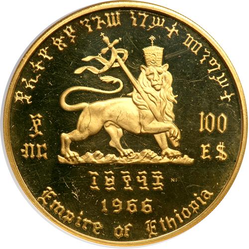 catalog Auction info Buyers Premium of 20.00% added to each and every lot September Pre Long Beach(#75) 09/22/2013 10:00 AM PDT CLOSED! Lot 3102 of 4487: Ethiopia. 100 Dollars, EE1958 (1966). NGC PF62 Click image to enlarge PreviousNextSimilar Items Lot closed - Winning bid:$1,500 (5 bids) Estimate: $1,200 - $1,300 Remove from watchlist Add to watchlist Tell a friendAsk a question September Pre Long Beach(#75) 09/22/2013 10:00 AM PDT CLOSED! Description Description: Ethiopia. 100 Dollars, EE1958 (1966). KM-41. Weight 1.1574 ounces. Haile Selassie Second reign. For the 75th Anniversary of Birth and 50th Jubilee of Reign. NGC graded Proof 62 Ultra Cameo. WINGS Approved. Estimated Value $1,200 - 1,300 Categories: World Gold