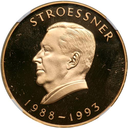 catalog Auction info Buyers Premium of 20.00% added to each and every lot September Pre Long Beach(#75) 09/22/2013 10:00 AM PDT CLOSED! Lot 3755 of 4487: Paraguay. 300000 Guaranies, 1988. NGC PF69 Click image to enlarge PreviousNextSimilar Items Lot closed - Winning bid:$2,050 (7 bids) Estimate: $1,400 - $1,500 Remove from watchlist Add to watchlist Tell a friendAsk a question September Pre Long Beach(#75) 09/22/2013 10:00 AM PDT CLOSED! Description Description: Paraguay. 300000 Guaranies, 1988. KM-174. Weight 1.3561 ounces. Mintage Est. 500 struck. 8th Term of President A. Stroessner. NGC graded Proof 69 Ultra Cameo. Estimated Value $1,400 - 1,500 Categories: World Gold