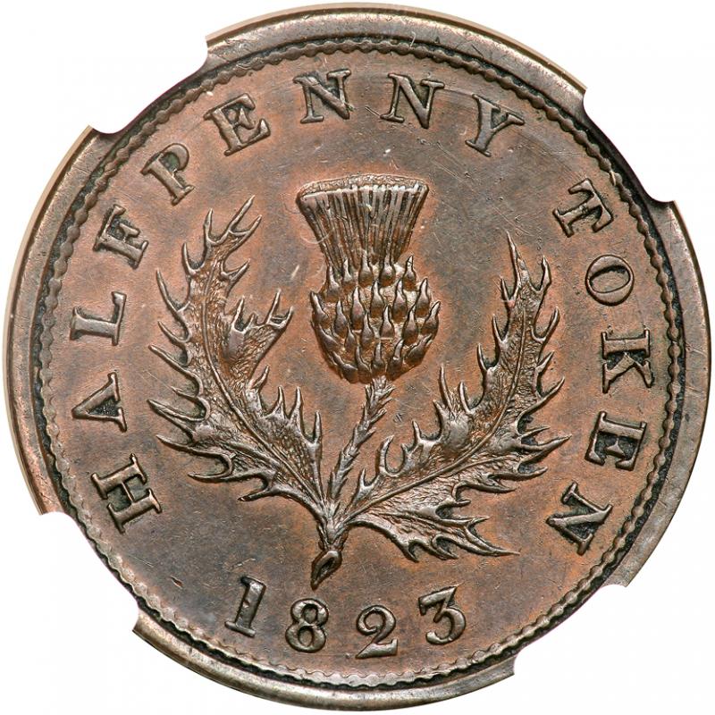 Lot 2930 of 3386: Canada - Nova Scotia. ½ Penny, 1823. NGC AU58