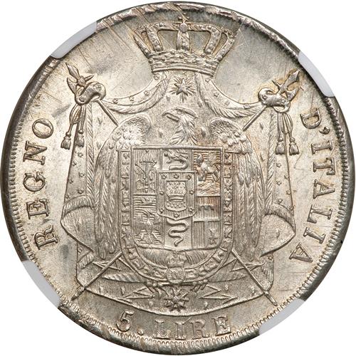 Lot 3389 of 3386: Italian States - Kingdom of Italy. 5 Lire, 1811-M. NGC MS63