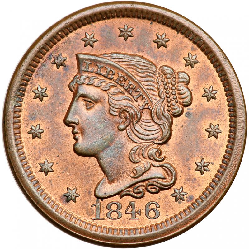 Lot 839 of 3386: 1846 N-9 R2 PCGS graded MS64 Red & Brown. PCGS MS64