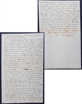 Autograph document signed ("H. Clay"), 2pp, 12½ x 7½", Lexington (Kentucky), n.d. (c. 1800). Addressed "