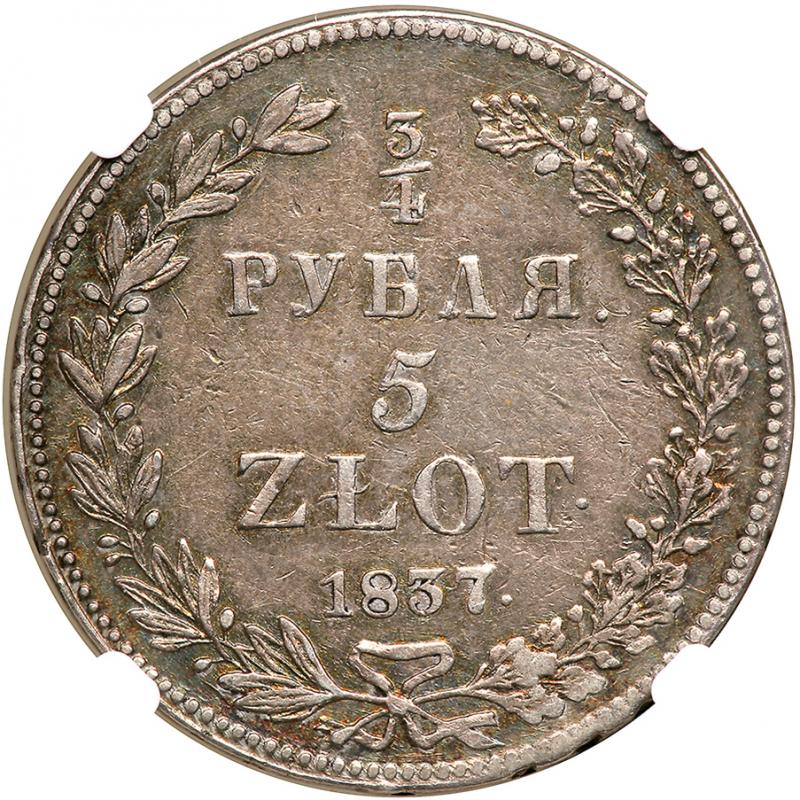 catalog Auction info Buyers Premium of 17.50% added to each and every lot June Pre Long Beach Sale(#80) 06/01/2014 10:00 AM PDT CLOSED! Lot 4390 of 3788: Poland. 5 Zlotych-3/4 Ruble, 1837-NG. NGC VF30 Click image to enlarge PreviousNextSimilar Items Lot closed - Winning bid:$160 (10 bids) Estimate: $75 - $100 Remove from watchlist Add to watchlist Tell a friendAsk a question June Pre Long Beach Sale(#80) 06/01/2014 10:00 AM PDT CLOSED! Description Description: Poland. 5 Zlotych-3/4 Ruble, 1837-НГ. KM-C133; Bitkin 1st ed-1063. Nicholas I of Russia. NGC graded VF-30. Estimated Value $75 - 100. Categories: World Crowns and Minors