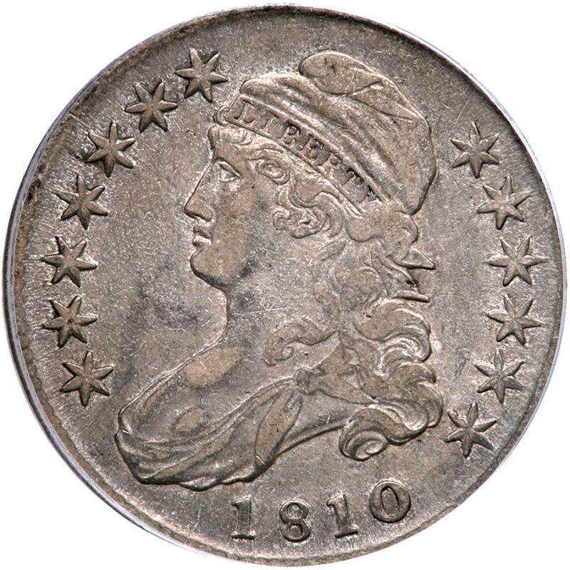 catalog Auction info Buyers Premium of 17.50% added to each and every lot June Pre Long Beach Sale(#80) 06/01/2014 10:00 AM PDT CLOSED! Lot 499 of 3788: 1810 Capped Bust Half Dollar. PCGS VF35 Click image to enlarge PreviousNextSimilar Items Lot closed - Winning bid:$250 (13 bids) Estimate: $180 - $200 Remove from watchlist Add to watchlist Tell a friendAsk a question June Pre Long Beach Sale(#80) 06/01/2014 10:00 AM PDT CLOSED! Description Description: 1810. Overton-108, Rarity 3. PCGS graded VF-35. Attractive gray toning. Much original detail still present (PCGS # 6095) . Estimated Value $180 - 200. Categories: Capped Bust Half Dollars