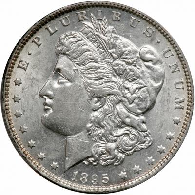 1895-O. PCGS graded AU-55. A nice frosty white coin. This well preserved About Uncirculated 1895 is of the finest order for its "55" category. The luster is evident in areas, the strike is nearly full, being quite crisp in most places, a desirable happenstance when one considers that dates in the mid-1890s often were not so well made