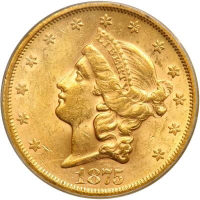 catalog Auction info Buyers Premium of 20.00% added to each and every lot September Pre-Long Beach(#60) 09/19/2010 1:00 PM PDT CLOSED! Lot 3110 of 3814: 1875-S $20 Liberty. PCGS MS61 Click image to enlarge PreviousNext Lot closed - Winning bid:$1,650 (1 bid) Estimate: $2,100 - $2,200 Remove from watchlist Add to watchlist Tell a friendAsk a question September Pre-Long Beach(#60) 09/19/2010 1:00 PM PDT CLOSED! Description Description: 1875-S $20 Liberty. PCGS graded MS-61. A lustrous and nicely preserved '75-S that has hues of beautiful pinkish gold color. The strike is normal for the issue with the usual heavy metal flows on both sides and only marginal weakness at some obverse stars. The revere is very bold. Pop 264; 117 finer (PCGS # 8975) . Estimated Value $2,100 - 2,200. Categories: