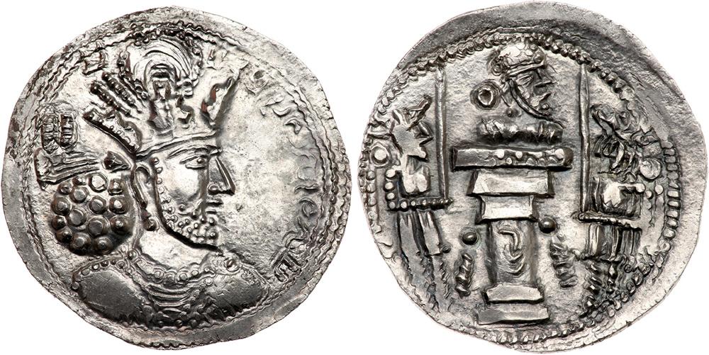 Lot 518 of 1725: Sasanian Kingdom. Shapur II. Silver Drachm (3.91 g), AD 309-379 EF