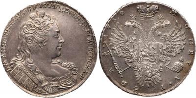 Lot 2081 of 1725: Anna 1730-1740, Rouble 1730. Moscow, Kadashevsky mint. No crosses on eagle’s crowns, * Ð?ÁË? *. 27.63 gm. Bit 22 (R), Di
