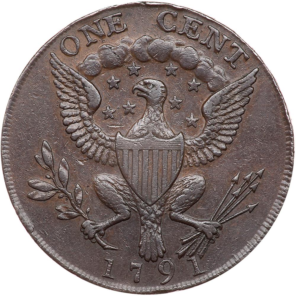 Lot 349 of 3371: 1791 Washington Cent with Small Eagle Reverse and Lettered Edge Breen-1217 EF40