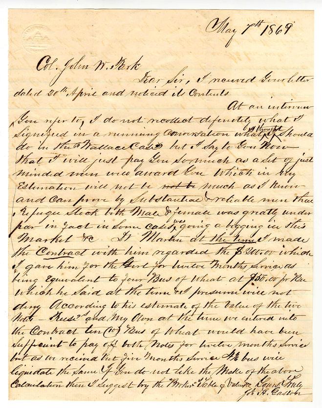 Lot 95 of 1082: Four Years After the End of the Civil War, a Broker Reports on the Market for Freed Men and Women