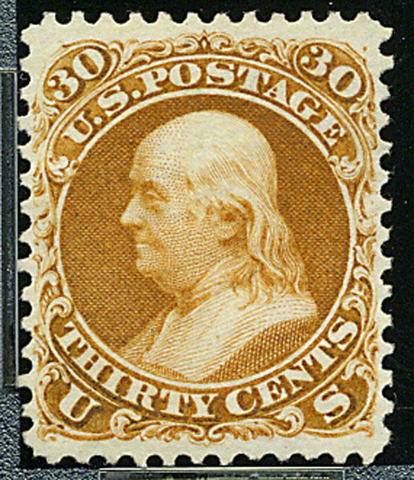catalog Auction info Buyers Premium of 20.00% added to each and every lot November 2010 Collectibles(#61) 11/06/2010 10:00 AM PDT CLOSED! Lot 3 of 739: 1875 Re-issue of 1861-67 issue, 30¢ brownish orange. Sup Click image to enlarge PreviousNext Lot closed - unsold (4 bids) Estimate: $4,000 - $5,000 Remove from watchlist Add to watchlist Tell a friendAsk a question November 2010 Collectibles(#61) 11/06/2010 10:00 AM PDT CLOSED! Description Description: (*) 1875 Re-issue of 1861-67 issue, 30¢ brownish orange. Scott 110. Without gum. Rich color and extremely well centered. Rarely available this nice. Superb. PSE slabbed Sup98 (2010). Estimated Value $4,000 - 5,000. Categories: